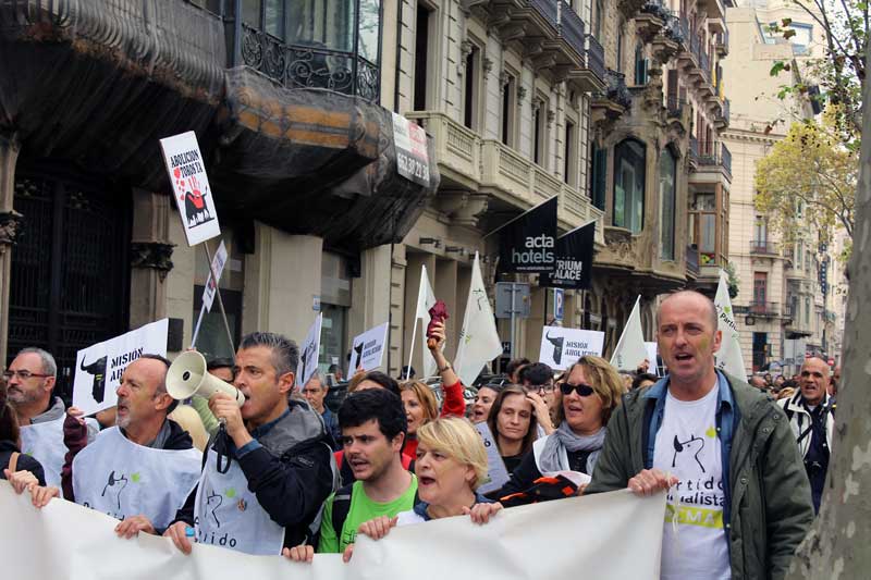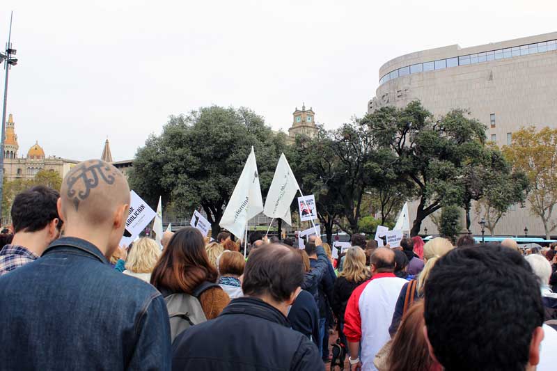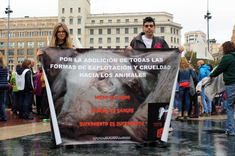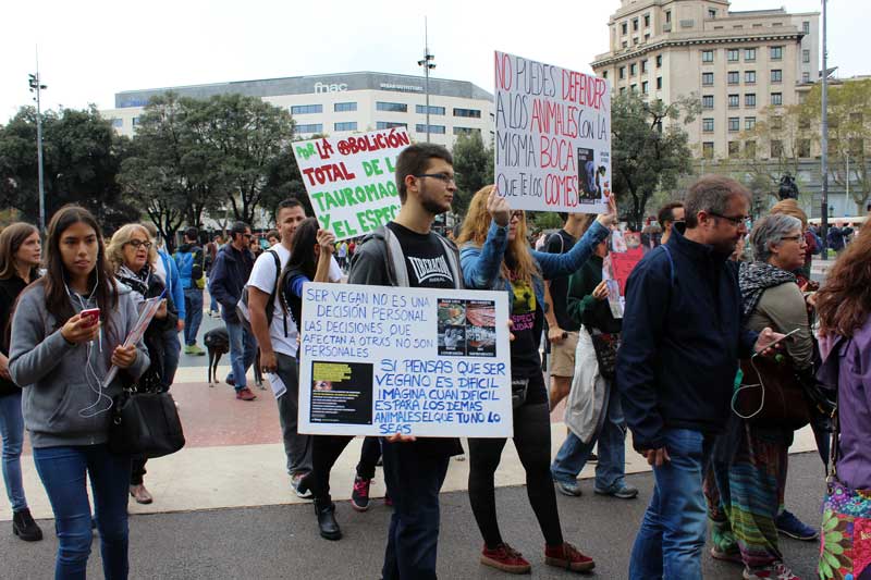 Nuestro amigo y fanecoadicto Eduard F. López ha asistido a la manifestación, y con su cámara en mano, ha realizado un fabuloso reportaje fotográfico que quiere compartir con todos nosotros, para que se sepa, para que todo el mundo vea que somos muchos, y cada vez seremos más, los humanos que defendemos los derechos de todo el mundo, incluidos los derechos de los animales.