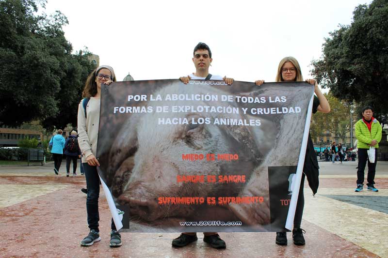 Varios cientos de personas nos reunimos para dar voz a esos millones de seres vivos que día a día son torturados, violados, encerrados, encadenados, humillados, vejados y asesinados ante la insaciable necedad del ser humano.